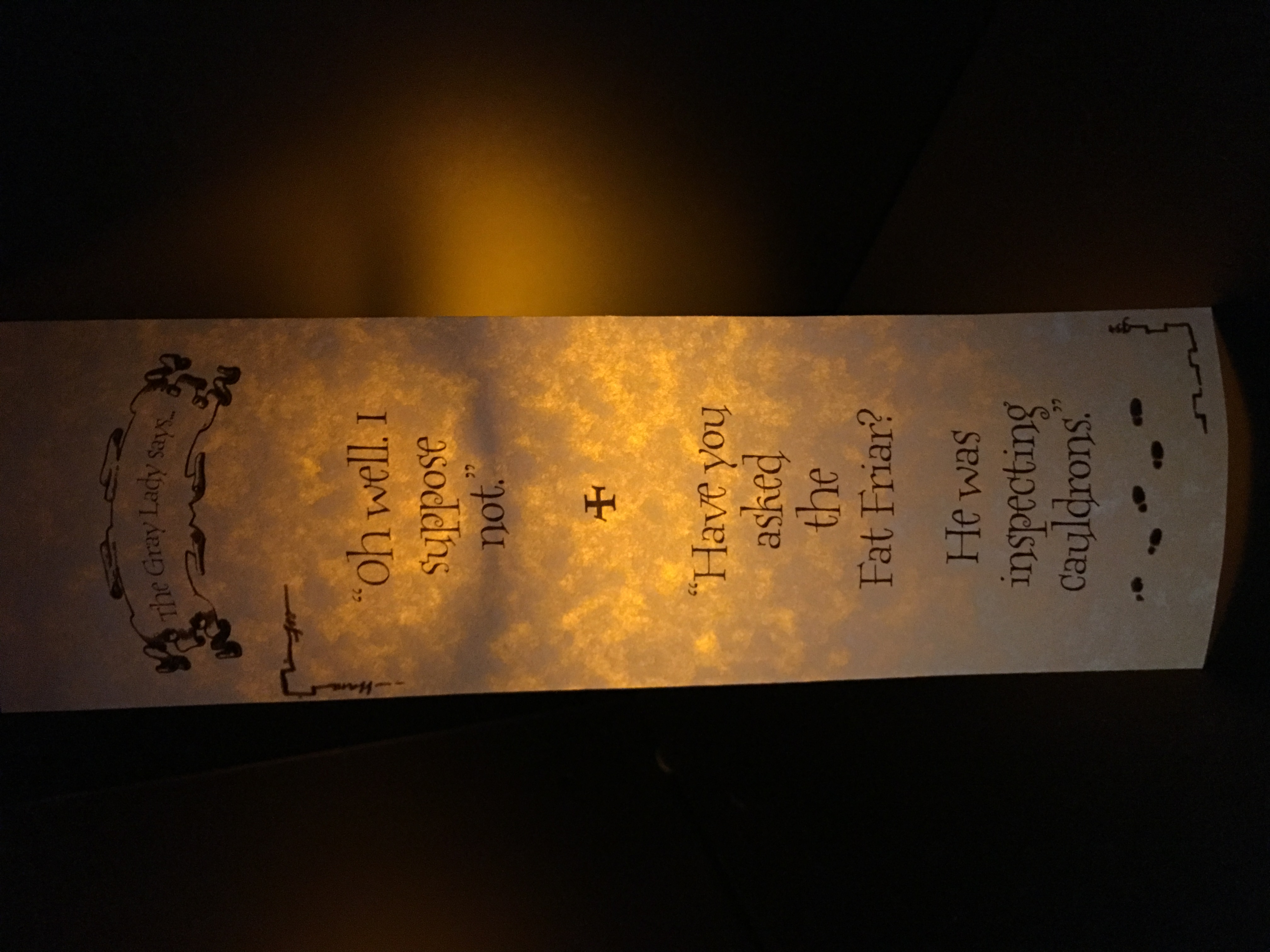After the marauder’s map scavenger hunt, the illuminated book went to live in the bookshelves in my office. In the darkest corner you find…
