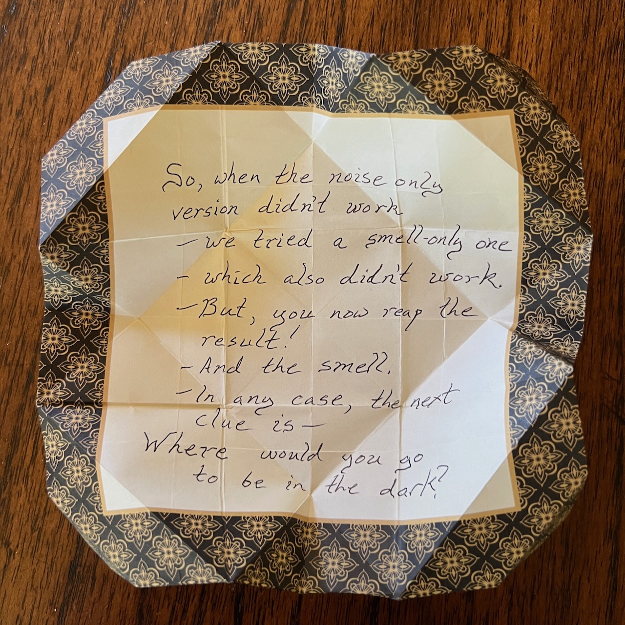 To save you reading my handwriting (which was surely part of the challenge), the text of the opening clue is…