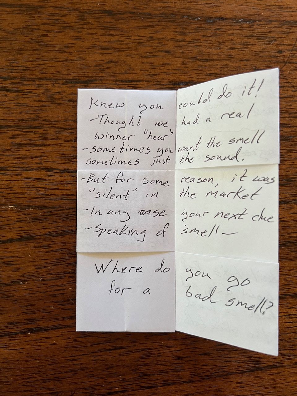 The clue was a flat fortune teller, but what made it stand out was the rounded corners and pattern on the paper.