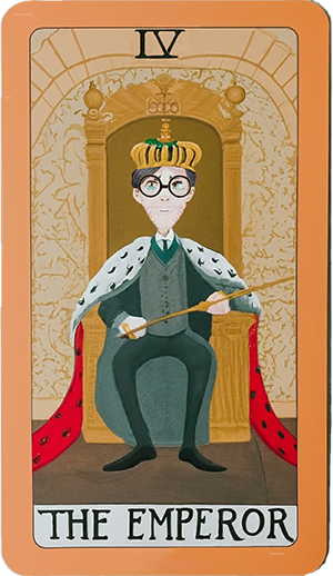 The red robes symbolize the creative fire. The orb in his left hand, his royal authority. The throne, willpower over the material world. Thus, the Emperor represents the best of father figures, but our fool must decide which attributes are useful and which are merely baggage from the past.