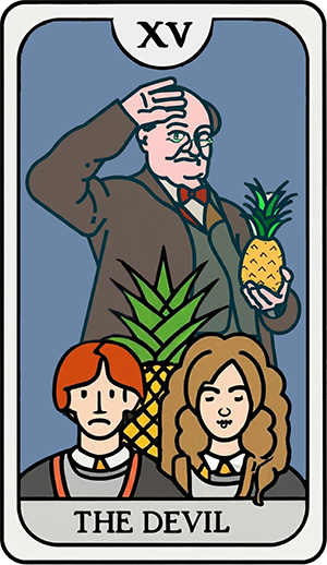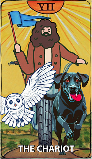 Representing both the ability of movement as well as the desire, one of the frequent call outs of this card is the two sphinxes facing in somewhat opposite directions and in different colors. In the Marseille deck, the horses are also in opposing directions and blue and red. Hagrid’s comment to Harry therefore is an important one – movement needs guidance and control.
