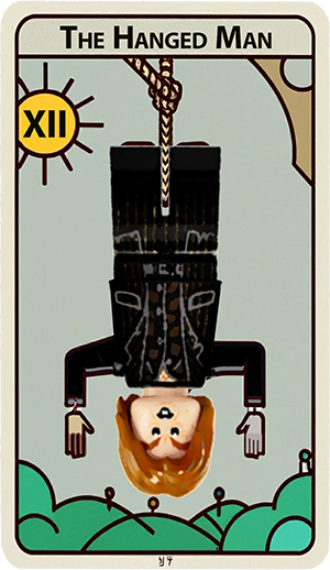 The Hanged Man is a card that has had many changes from its original meaning, although the artwork is largely unchanged. In the Renaissance Italy, when the original tarot was created, if an individual could not be brought in to stand for their crimes, the governing authorities would commission an Pittura Infamante to be painted in a public location, as a way of hanging the subject in effigy. And so in original Tarot readings, the hanged man represented traitors and traitorous behavior. But “blood traitor is next to Mudblood in my book” – clearly one person’s act of treason is another’s act of defiance. Waite-Smith and others that followed them consider the Hanged Man a sign of repudiating their own self-desires.