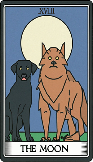 The moon, while it does illuminate the night, changes our perceptions and creates an otherworldly perspective that can confuse and even trap our hero. It has been associated with fear, illusions, as well as imagination. While “in dreams, we enter a world that is entirely our own” this card is also a reminder to wake up, and live our lives with our eyes open.