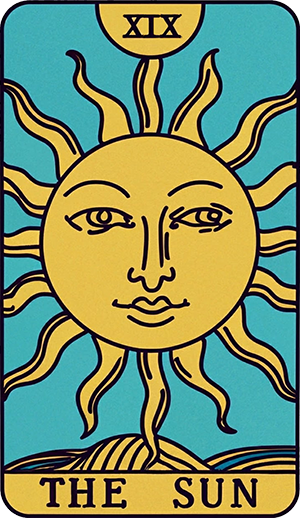 One of the happiest cards in the deck, the sun represents victory, the happy outcome, success at last. The main challenge is to readjust to this new phase of their life. And of course, a reminder that frequently in life as well as in movies, there is a last challenge, even after all seems complete.