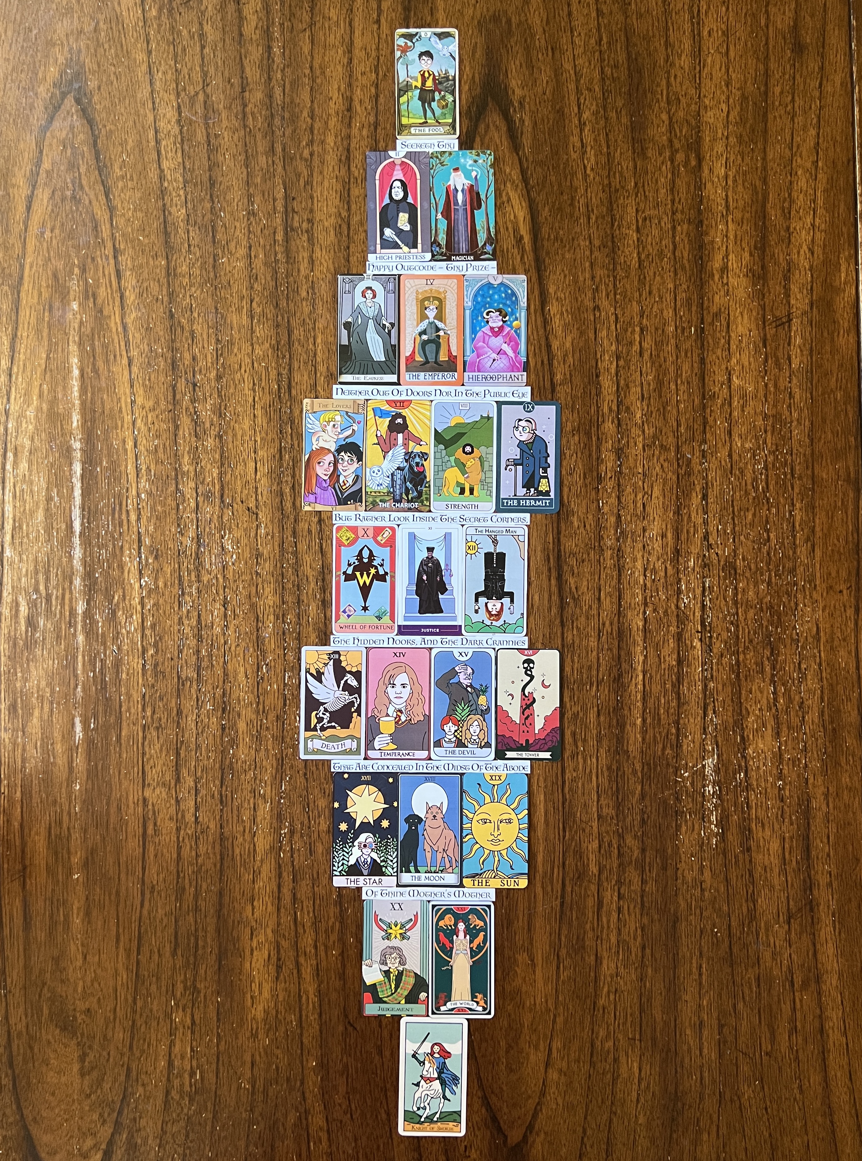 If you have gotten this far, congratulations and thanks. If you are wanting even more, you can check out the behind the scenes post that has the ‘original’ and ‘Harry Potter’ version side by side and how and why I chose the Harry Potter character for each Tarot card.