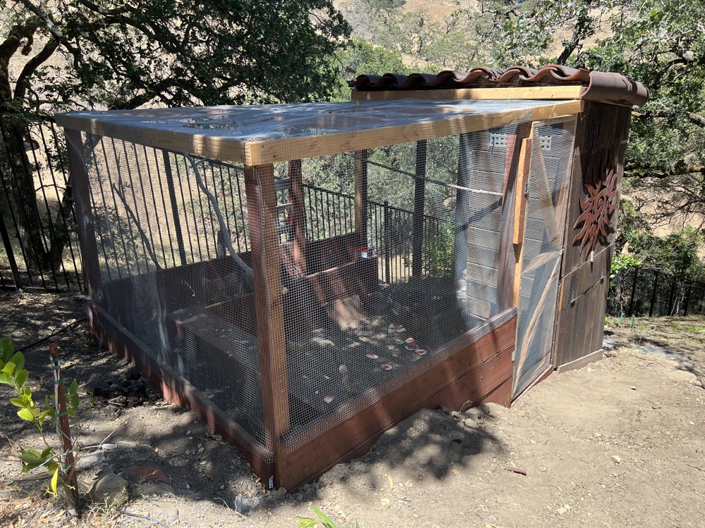 When finished, we covered the sides and roof with hardware cloth - thicker than the typical ‘chicken wire’.