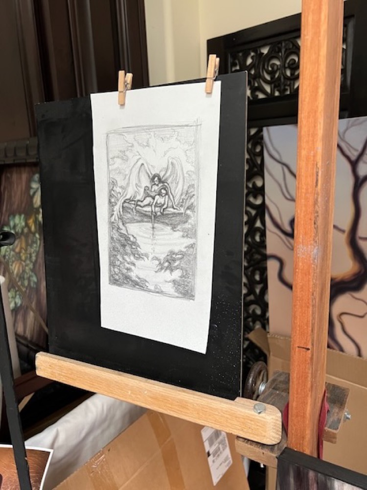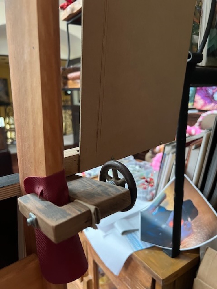 On a roll, she then said, “I want a clippy thing that will hold my iPad, or any art I’m using as a source while I paint. Can you do that?”