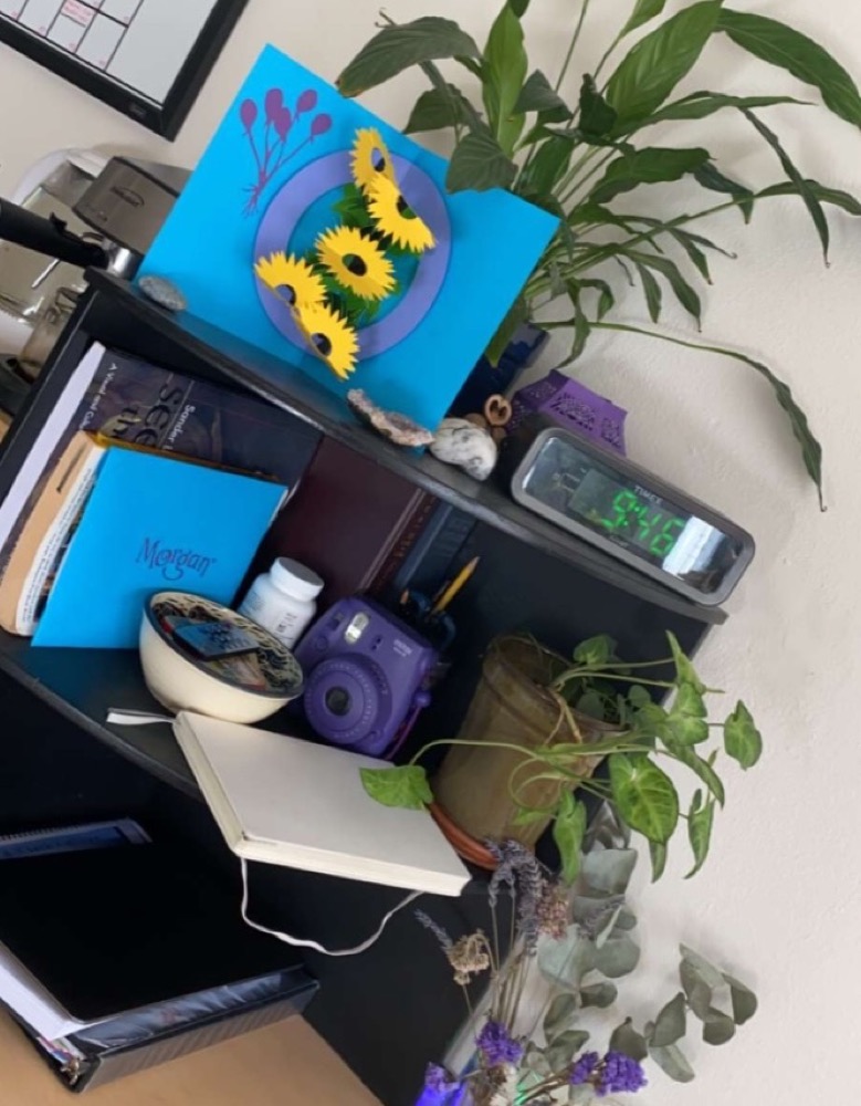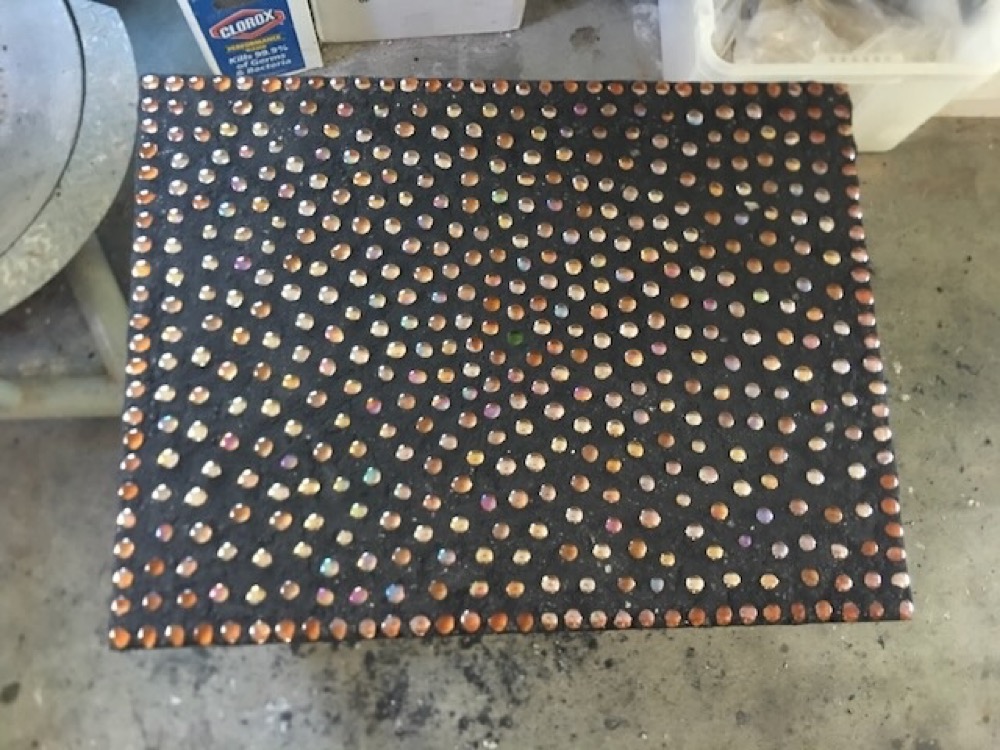 Afterwards, my daughter finished the top with spare glass stones we had and it now lives in my office.