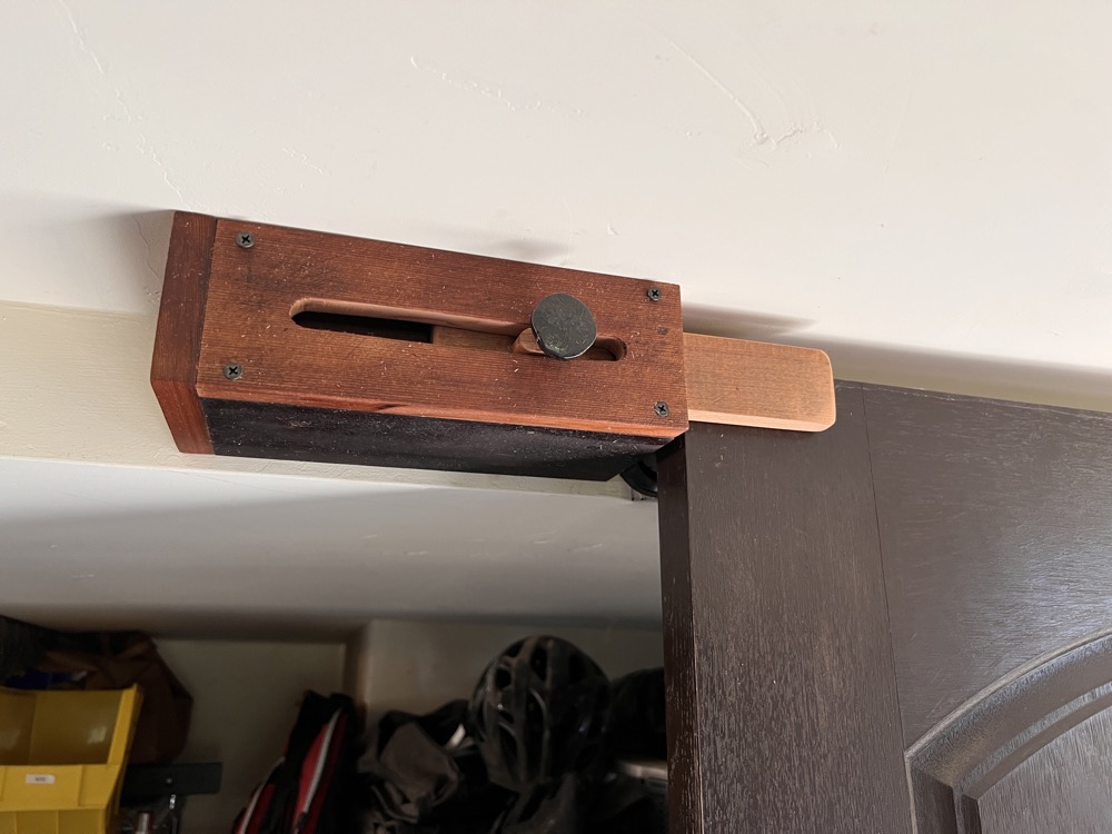 A door-stop I made when working on Morgan’s kitchen shelves. The knob was again some spare part I couldn’t bear to part with.