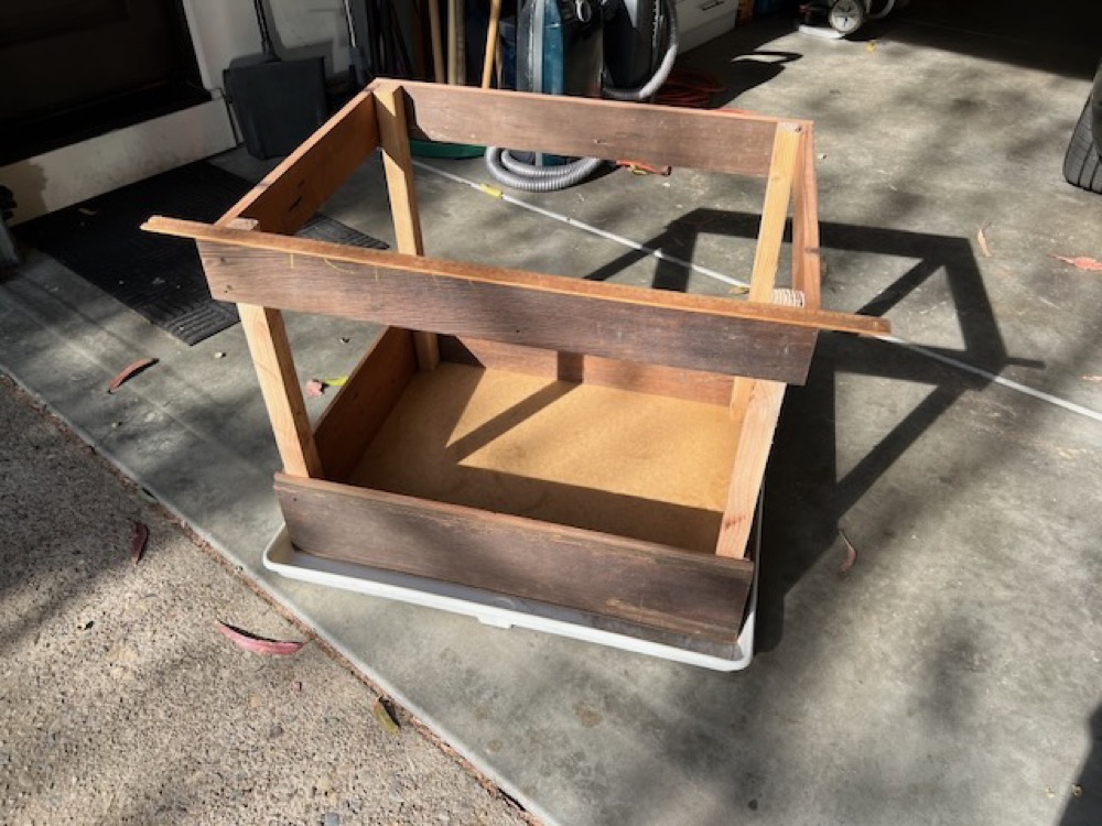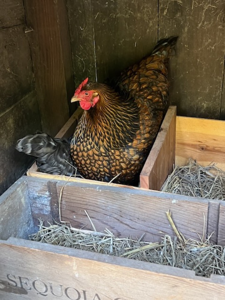 When we got four new mystic onyx chickens, I made a larger chick brooder as the tub they were in was too small. By they time I had finished it, they were already so big they needed to go in the main coop with the others. I also transformed a wine box into two egg boxes. I could never get the previous chickens to go for a box - or even in the coop proper - so I started with the box on the ground (where they were laying) and then moved the boxes to the coop and they have been laying their consistently ever since!